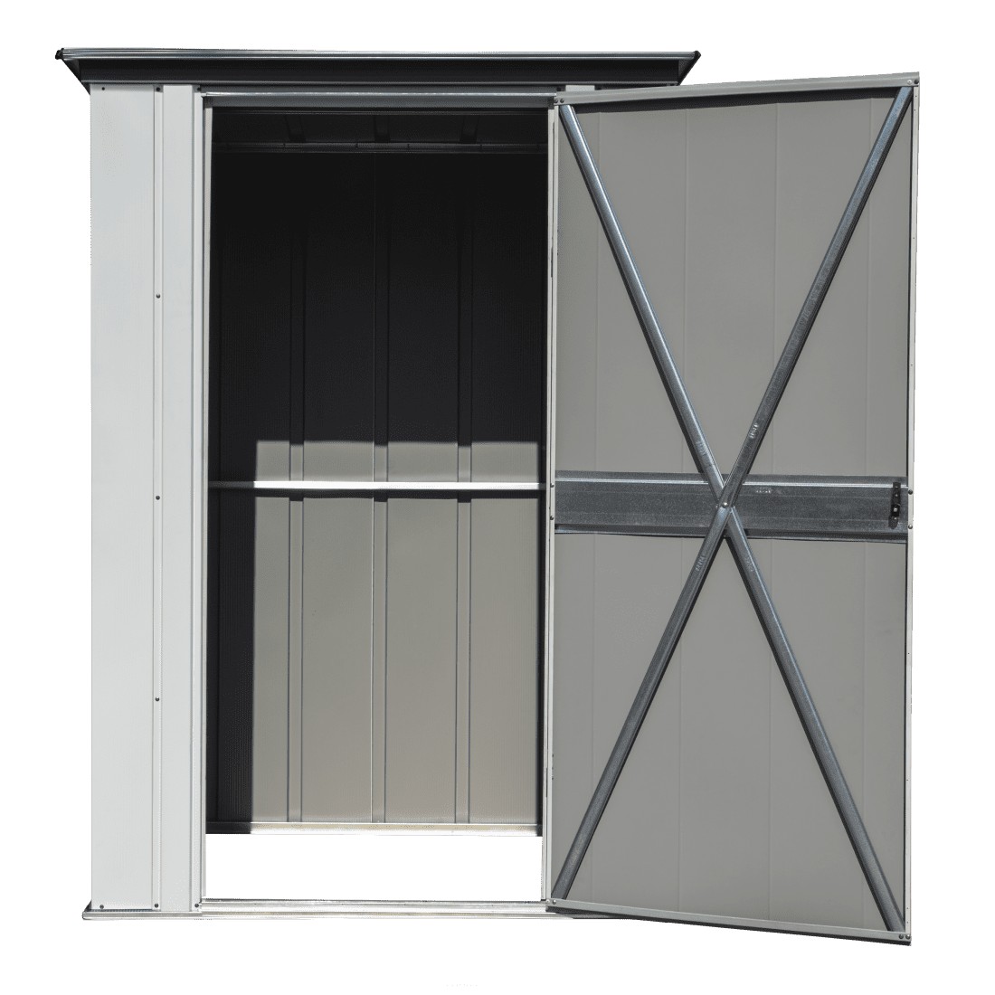 Eine kleine Metall-Gartenbox Spacemaker Arrow bietet Ihnen einen Platz zum Aufbewahren praktischer Dinge auf der Terrasse, im Garten oder auf dem Grundstück.